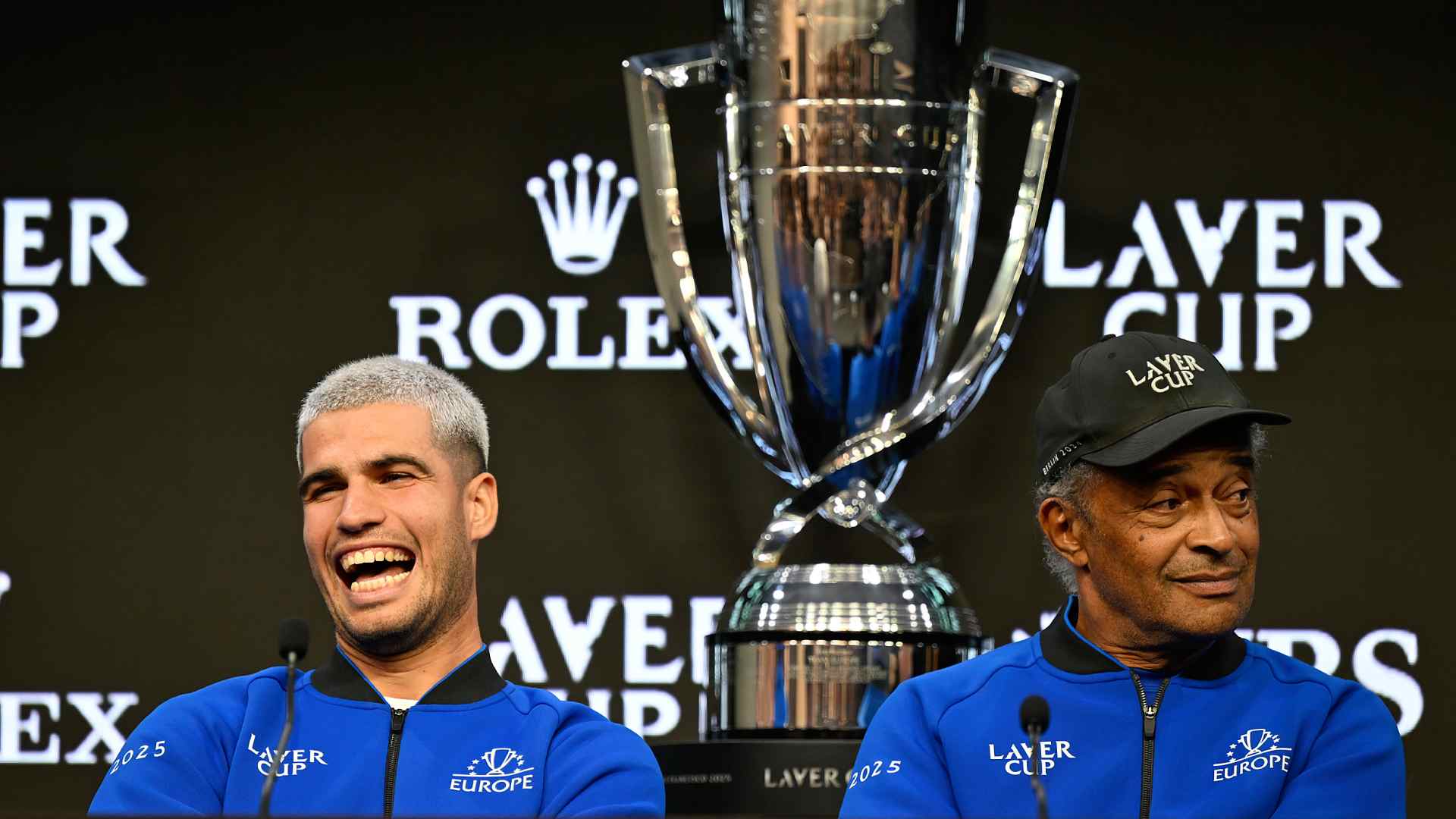 Carlos Alcaraz and Yannick Noah deal with the media forward of the eighth version of the Laver Cup in San Francisco.